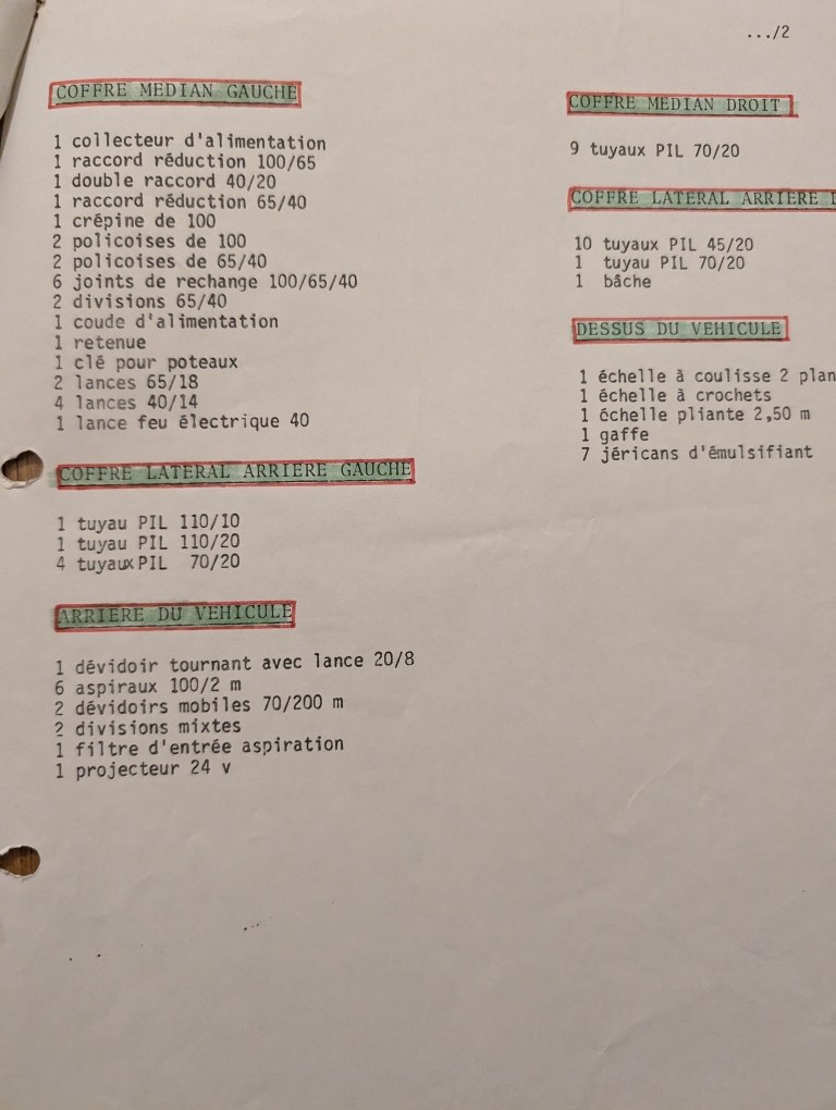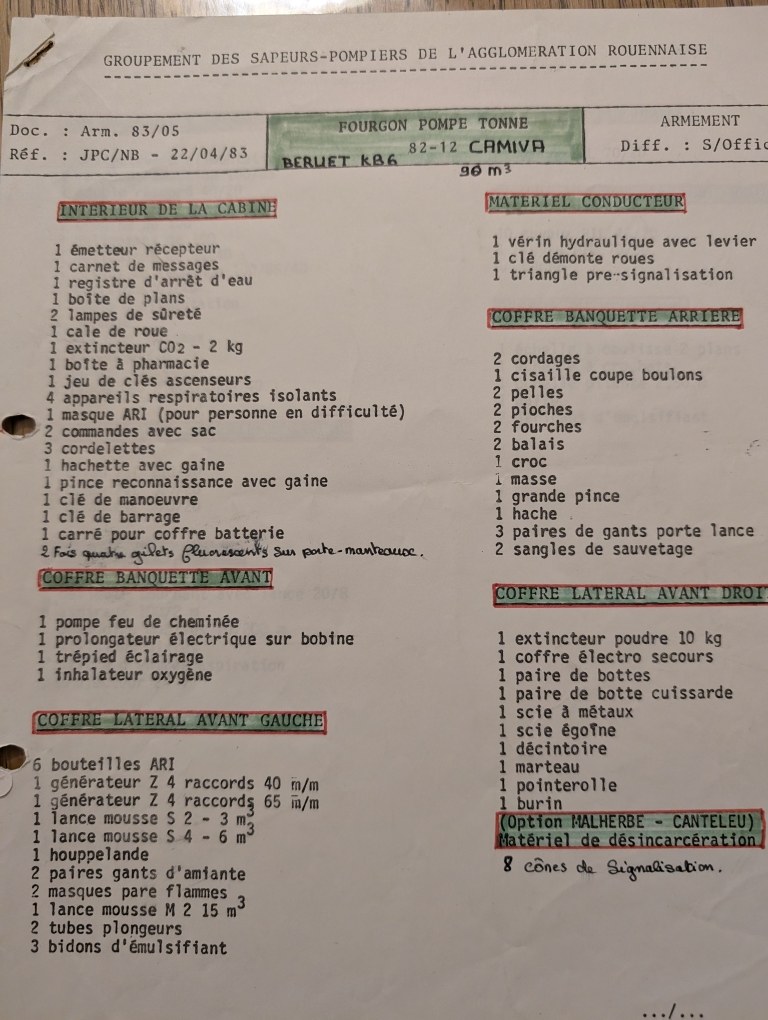 fort bien pour cette liste d'armement, mais elle concerne le FPT 82.12 immatriculé 9644LM76, en effet doté de la pompe Camiva CH90/1, acheté en 1982, en même temps que le FPTL de Montivilliers, mais qui ne fait pas partie des lots que j'ai indiqué.... je n'ai rien dit d'autre dans mon précédent post. |