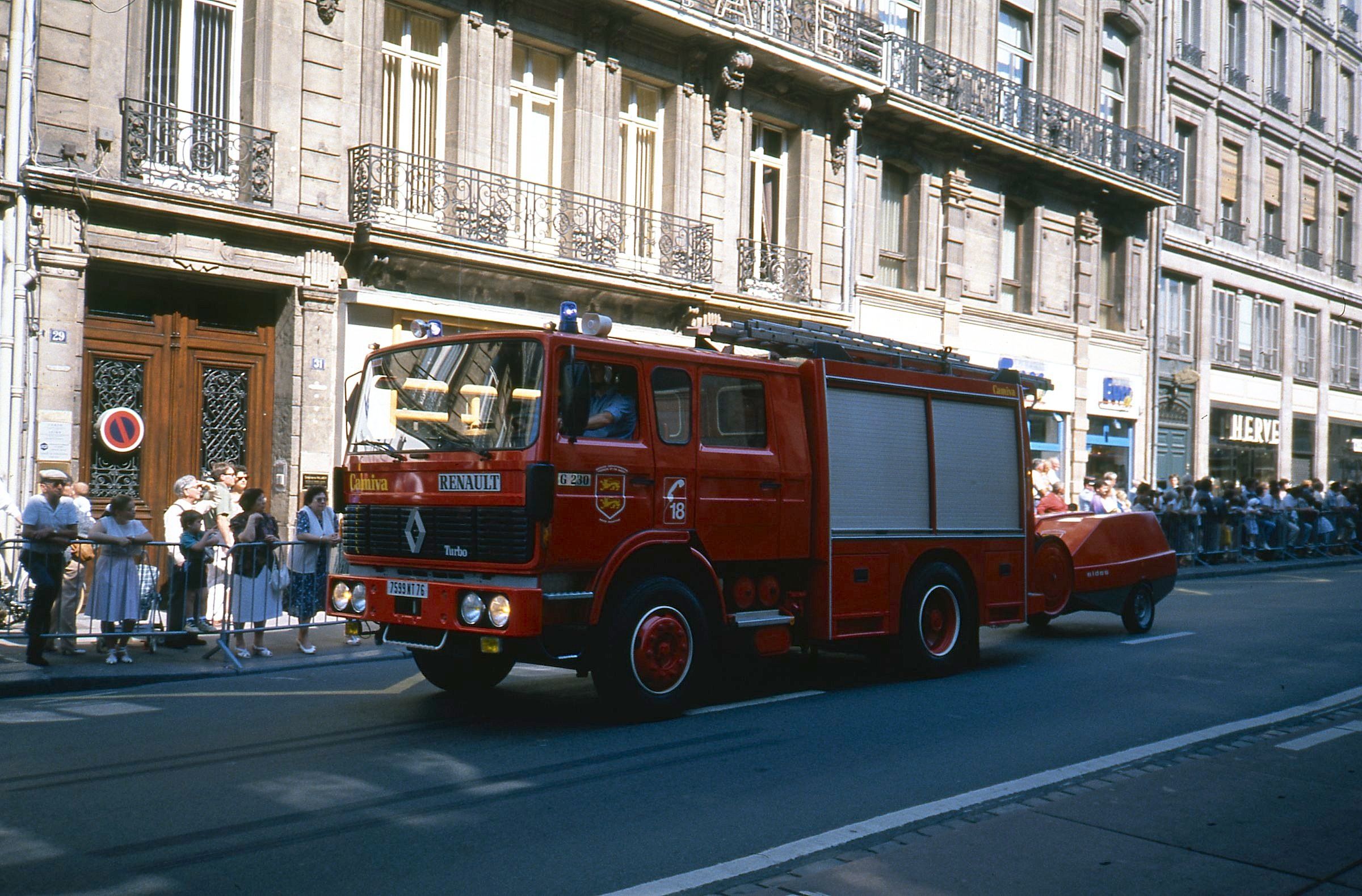 A partir de 1986, le SDIS76 se tourne vers la nouvelle gamme Renault, avec un G230 en 1986, puis 3 S170 et 4 G230 en 1987, tous équipés par Camiva. Les G230 sont des FPTGP 120m3/h, alors que les S170 sont des FPT avec pompe 90m3/h |