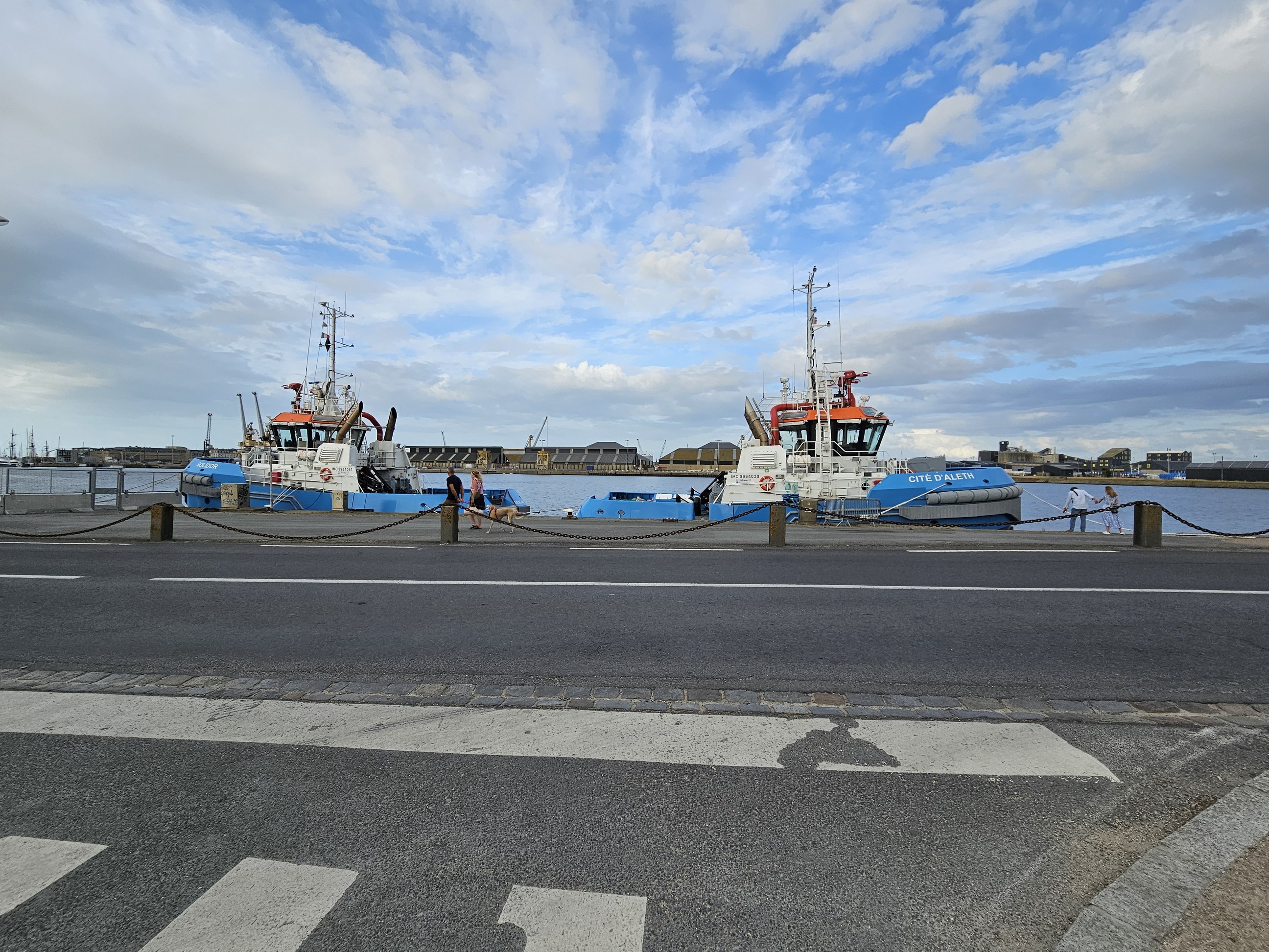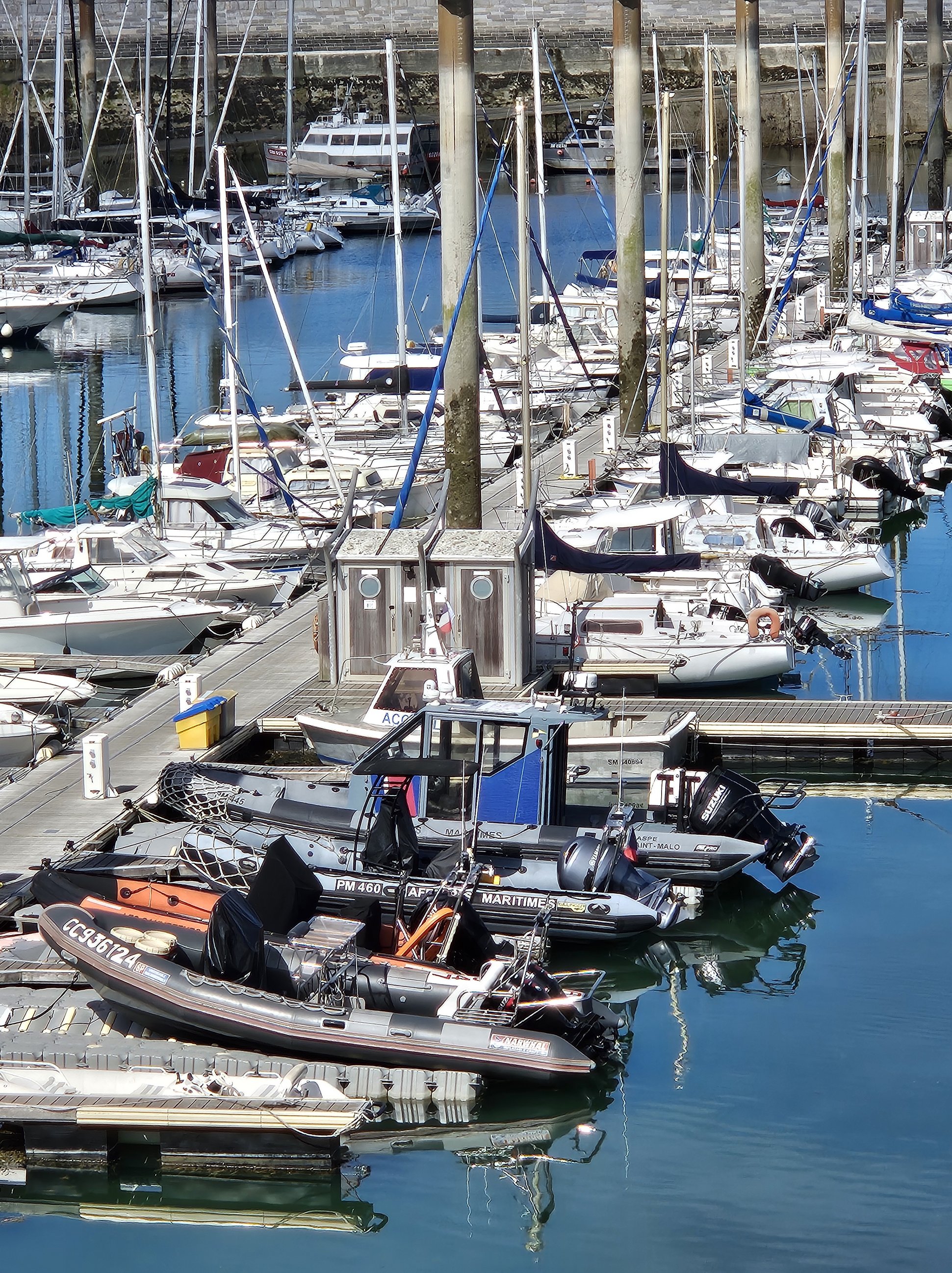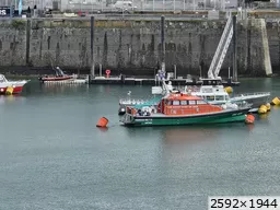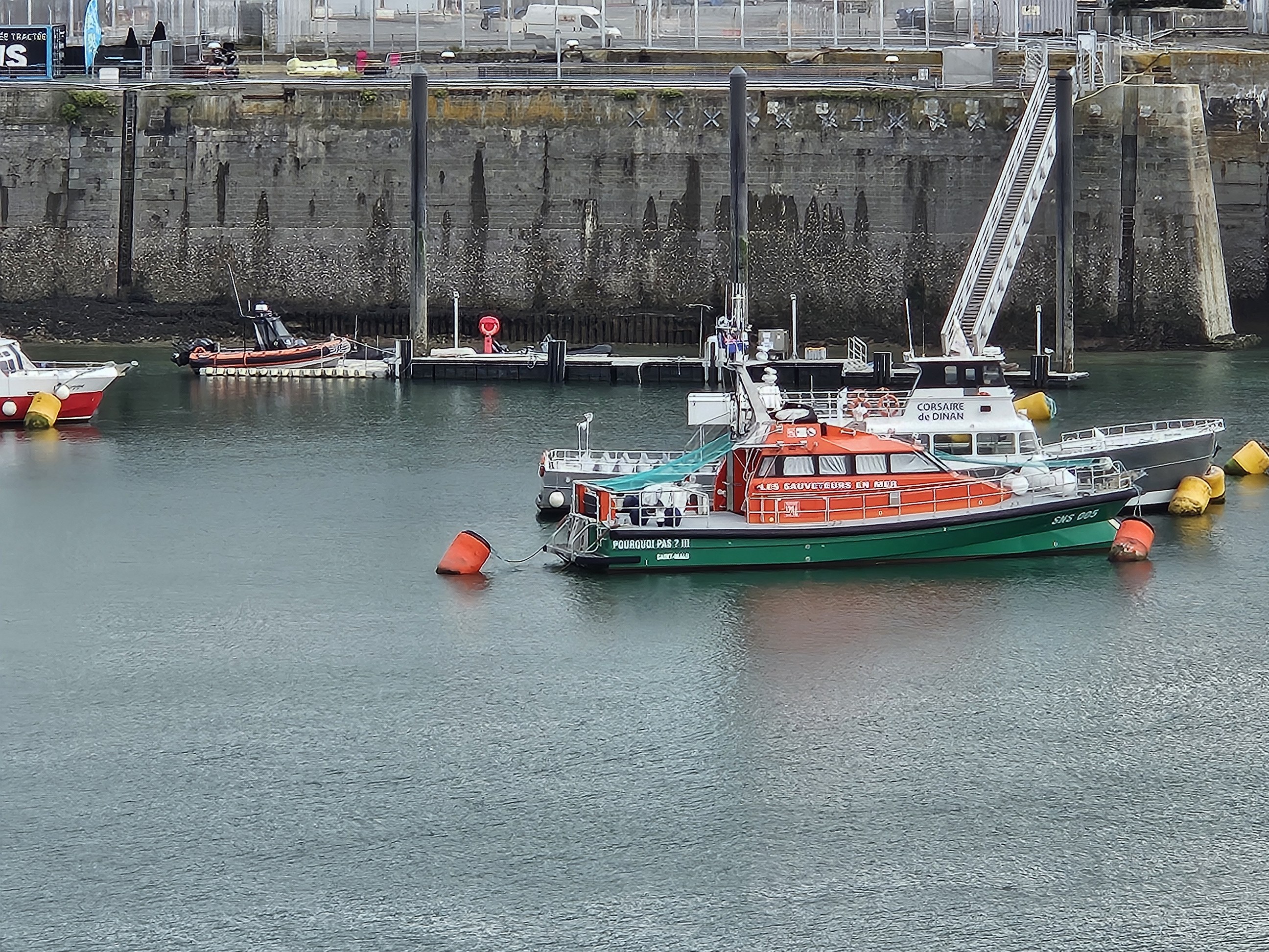 Quelques moyens nautiques, plus communs, de la SNSM de Saint Malo, entre le port des Sablons et le port de commerce Sans oublier les fleurons du port que sont les deux nouveaux remorqueurs Cité d’Aleth et Solidor, propulsés par deux moteurs de 800 CV et aux moyens d’extinction impressionnants... ![]() |