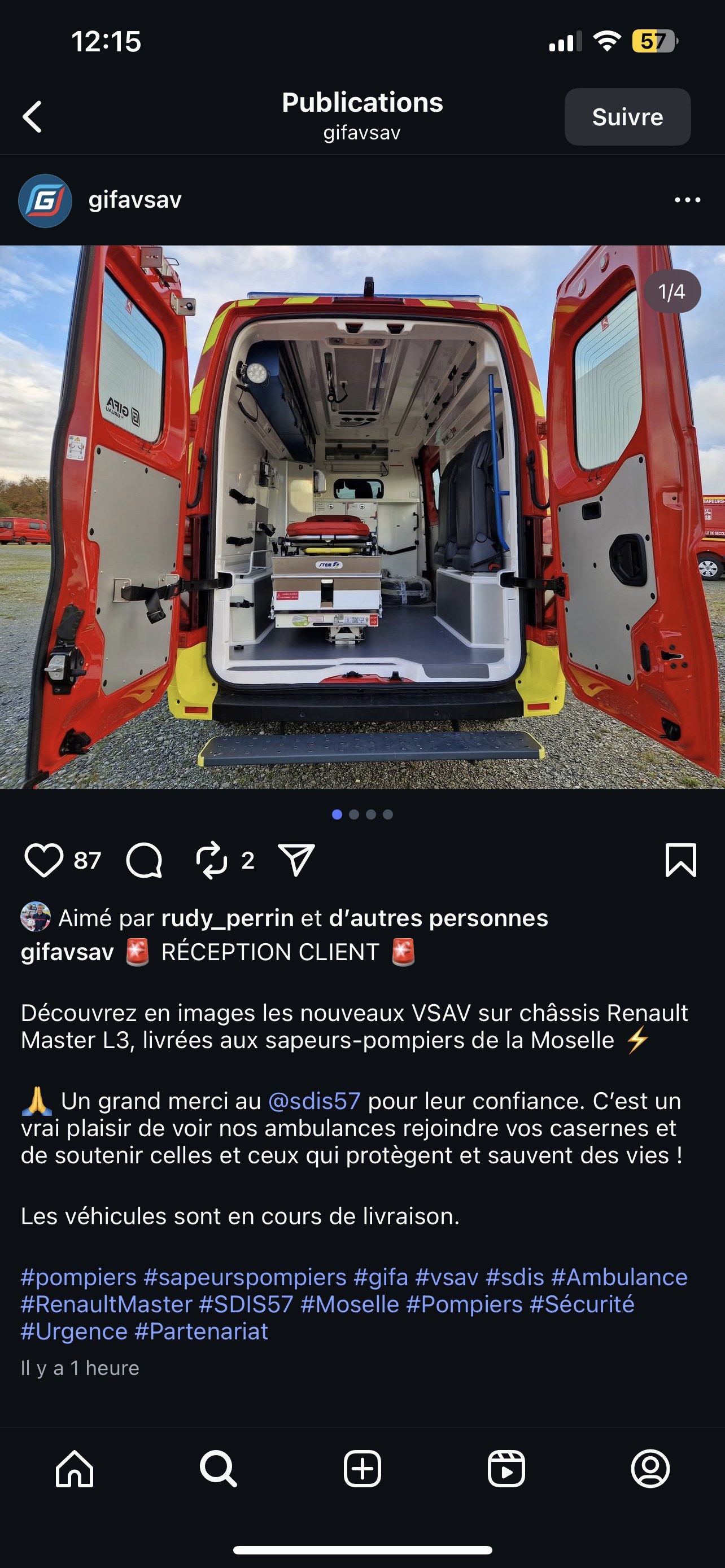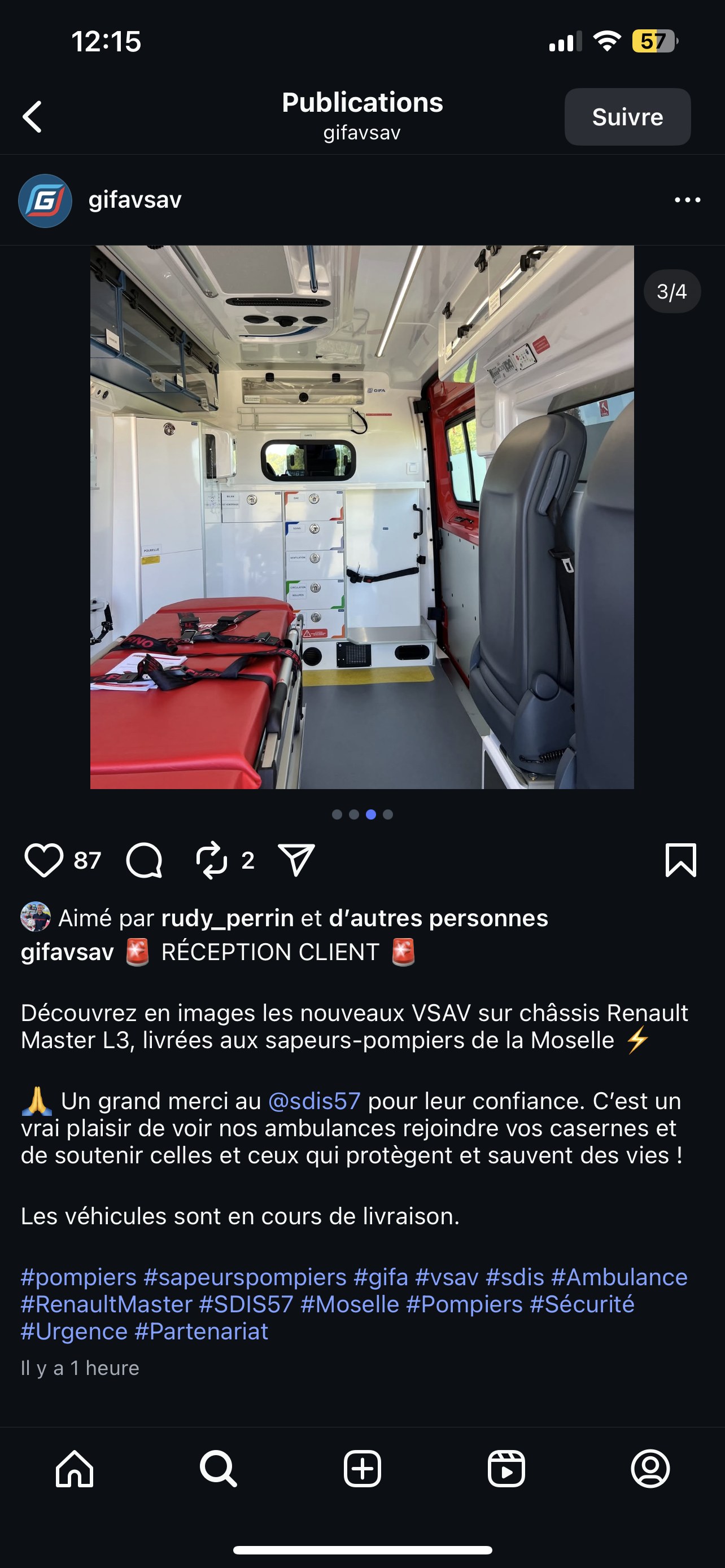 Nouveau VSAV du SDIS 57 Vues sur Instagram sources gifa Dernière édition le 25/11/2025 à 12:18 par Shark-57, édité 1 fois |