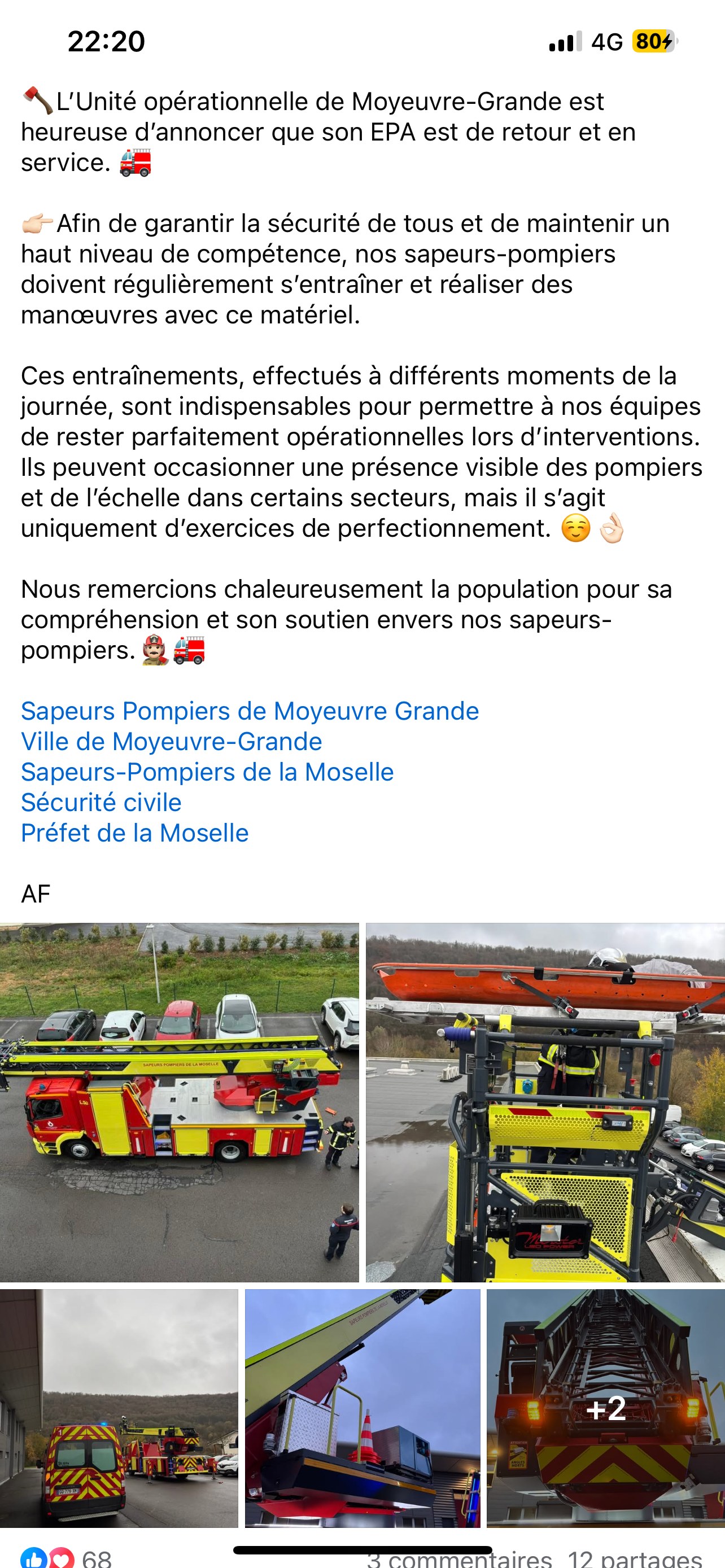 L’EA32 de moyeuvre - grande est t’elle déjà revenue dans son UO ? Le SDIS 57 passe en part-choc jaune maintenant ? |