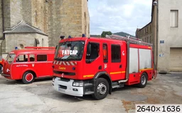Il faut avouer qu'on a eu un super congrès avec un plateau de véhicules anciens fourni de 3 Jeep, 2 Dodge, 1 Laffly, 1 Galion, 1 half-track, 1 Berliet GLR, 1 Delahaye les nouveaux engins avec les news FPTSR, VSR, VPL, CeCMIC, CePMA, EPA18, VRCH... l'ensemble du parc de Lodève avec du matos récent et en nombre : 3 VSAV, VRM, VSR, 3 CCF, FPT, EPSA, VCFF, CPCe, CePMA, CeCGC, CeD, RPo, VGD, MPR, et enfin plusieurs engins récents (CCF, FPT, VRM) soit une grosse 40aine d'engins exposés. Enfin, s'il n'étaient pas présenté, on a pu voir le nouveau VTP Irisbus, les VLTT Pathfinder, les VRM Mégane 3, la 407 VL Direction... Vraiment une réussite ! |