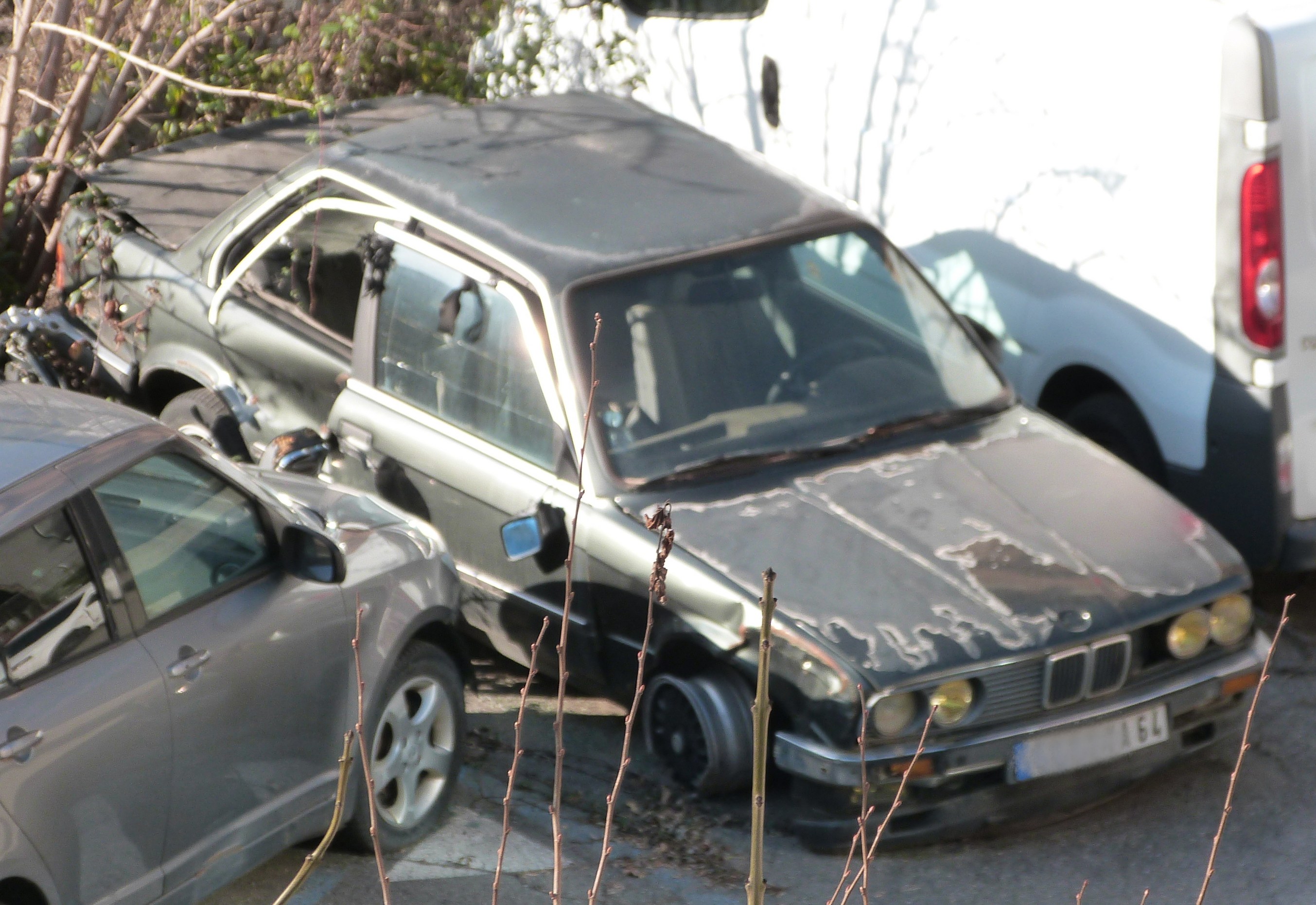 Andorre la Vieille, 2022/03 Le conducteur de cette BMW série 3 E30 immatriculée dans les Pyrénées Atlantiques a dû se montrer un brin trop présomptueux sur les routes andorranes... ![]() |