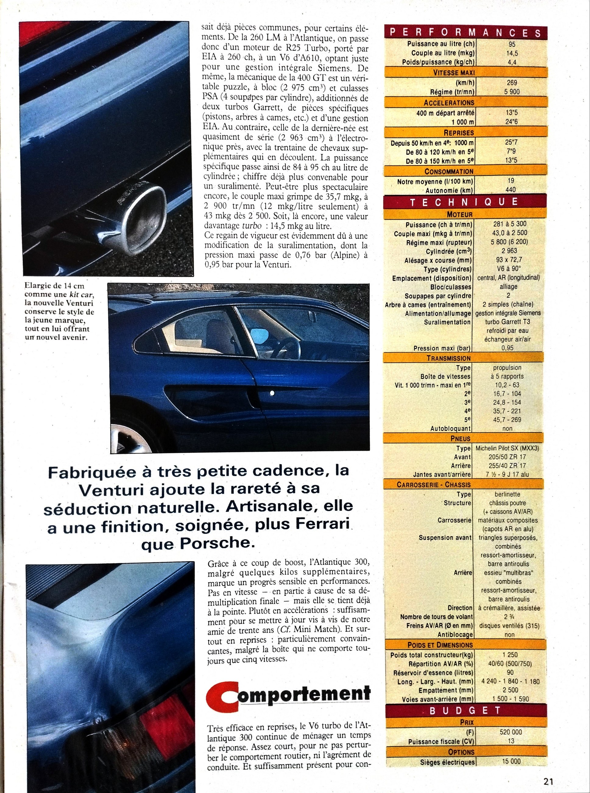 Citation de Ben_92 : « Vu les chiffres les 70cv de plus de la Ferrari doivent être très théoriques @Ben_92 Les Venturi ne pouvaient pas se permettre d'annoncer une puissance supérieure à la réalité. Question d'honnêteté et de respect du client. Les.moteurs faisaient ainsi 4 à 5 ch de plus que celle annoncée. Ainsi les Atlantique 300 faisaient 286 pour 281 annoncé. |