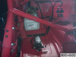 le tableau de bord avec ses led, CE et injection méthanol... :duh: ayé, les boas sont fixés, reste plus qu'à refermer la boite en carbone devant... :yes: au passage j'y ai fixé deux led pour visualiser le déclenchement des 2 paires de ventilos.. :duh: raccordement de la pompe à méthanol terminé :o pour rassurer ceux qui trouvaient que la garde au sol était vraiment faible :P :saint: |