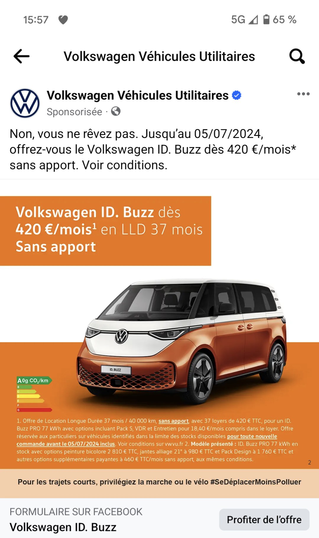 Pour le ID Buzz j‘ai reçu une belle config à 460€/mois… |